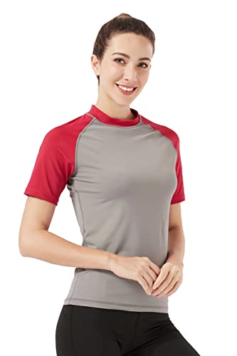 HMILES Womens UPF Short-Sleeve Rashguards - Female Quickdrying Surfing Shirt Adults Breathable Raglan Sleeve Swim Tee Wet Top Grey/Red 18