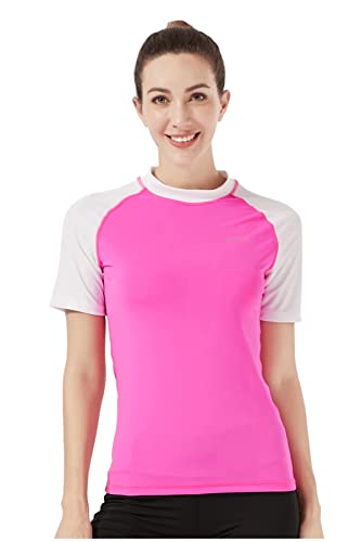 HMILES Womens UPF Short-Sleeve Rashguards - Female Quickdrying Surfing Shirt Adults Breathable Raglan Sleeve Swim Tee Wet Top Baby Pink/White 18