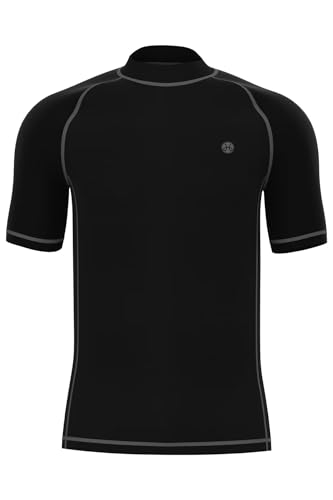 Mens Short-Sleeve Rash Guards - Adults UV Production Breathable Active Beach Sports Swim Tee Male Quickdrying Surfing Shirt Water Sport Wet Top Black L