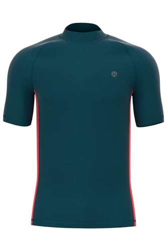 Mens Short-Sleeve Rash Guards - Adults UV Production Breathable Active Beach Sports Swim Tee Male Quickdrying Surfing Shirt Water Sport Wet Top Petrol Blue XXL