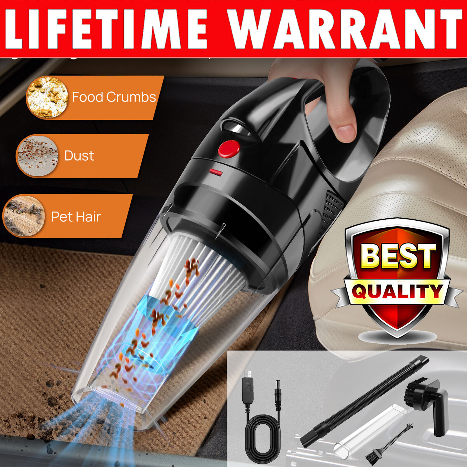 9500pa Cordless Wet&Dry Car Vacuum Cleaner Handheld Rechargeable Home USB LED