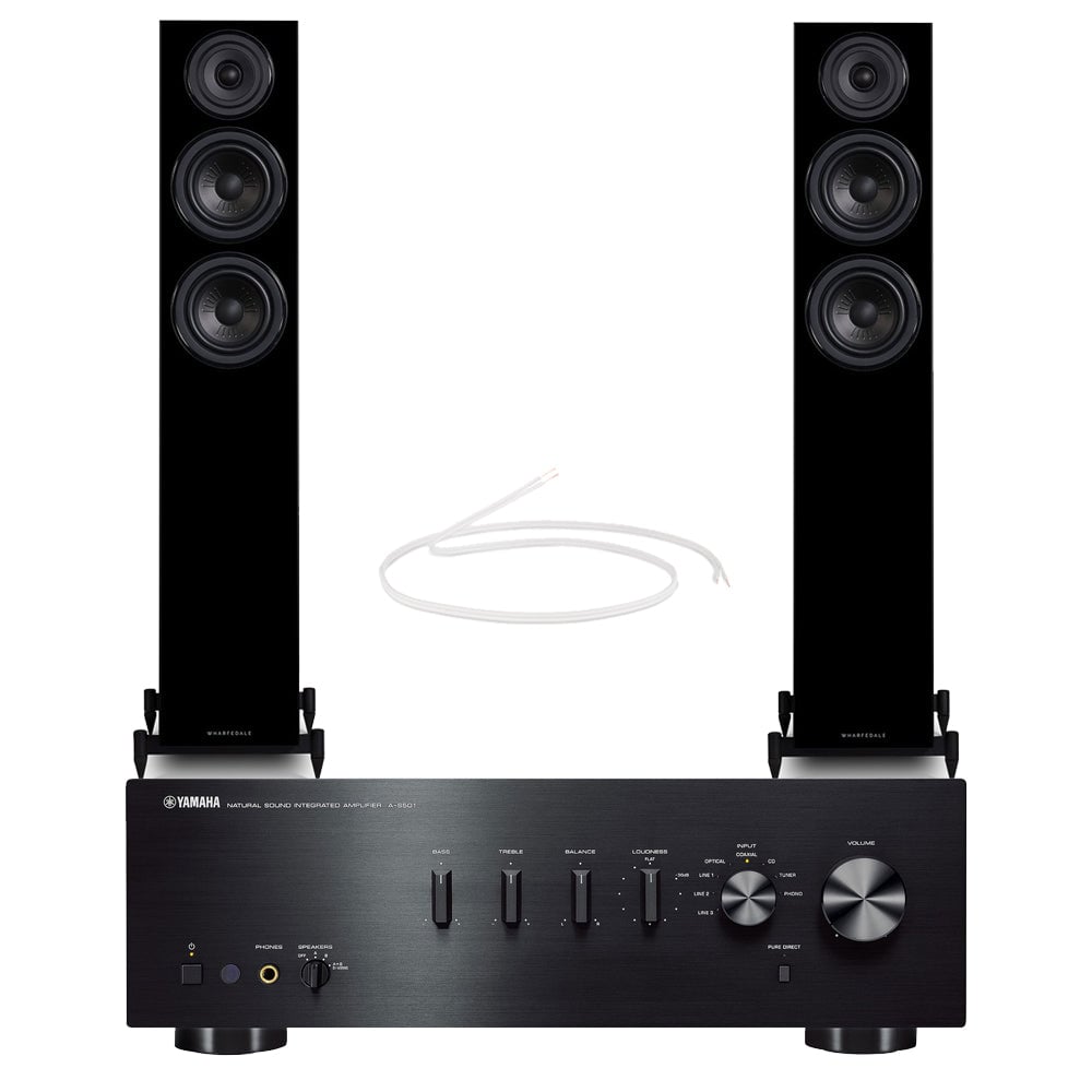 Yamaha AS501 Integrated Amplifier with Wharfedale Diamond 12.3 Floorstanding Speakers Pair Black HiFi Package
