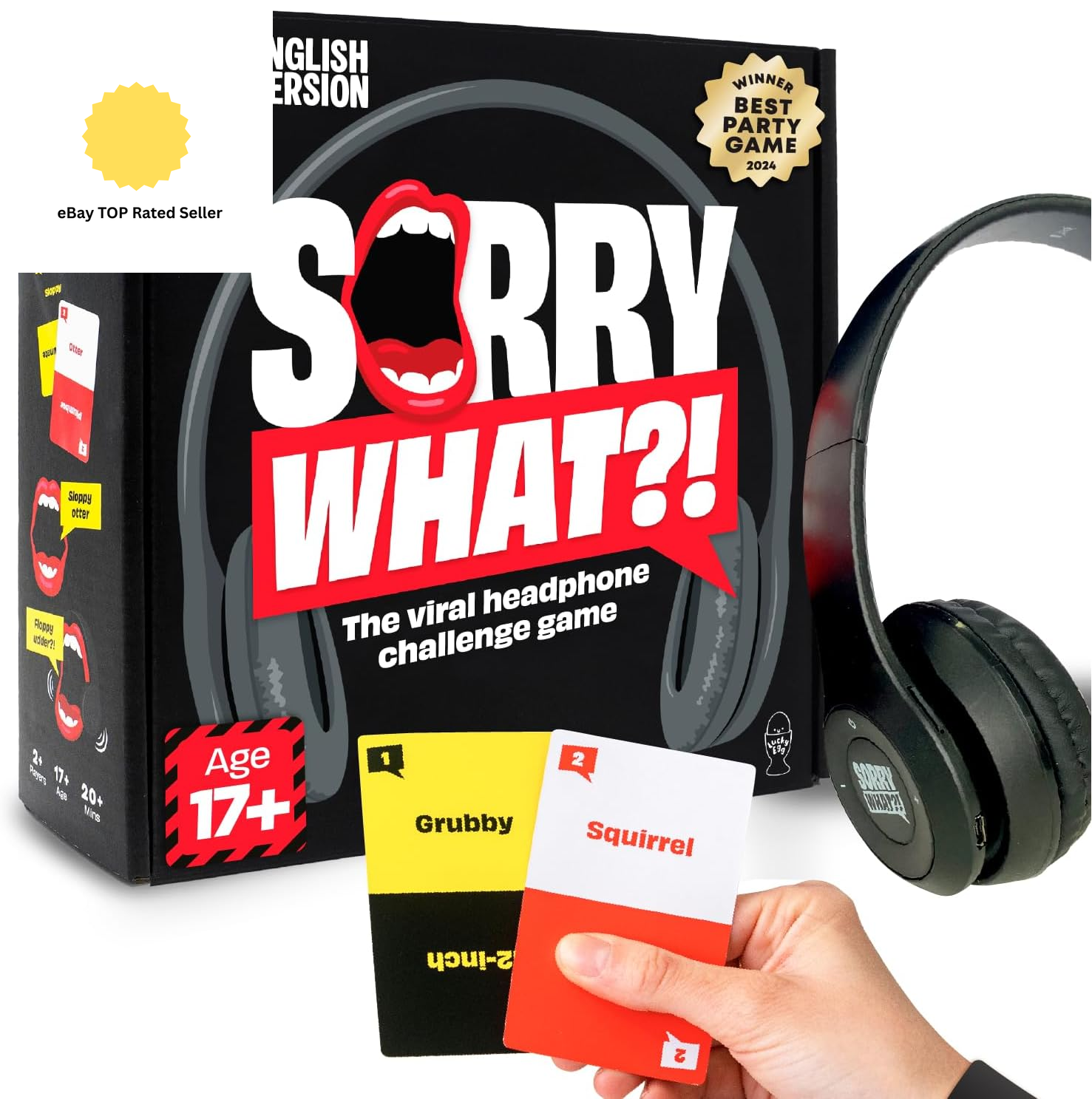 Lucky Egg Sorry What - Hilarious Lip Reading Adult Card Game - Uncensored Based On The Headphone Challenge TikTok Trend - 2+ Players 40,000 Funny Word Phrase Combinations - Party Game for Adults 17+