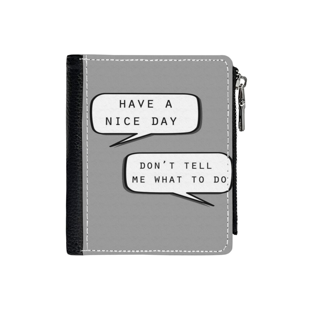 (Have A Nice DayDon't Tell Me What To Do_52) PU Wallet Compact Bifold with Zipper & Multiple Card Coins Slots Black Stylish Durable Graphic Design Pri
