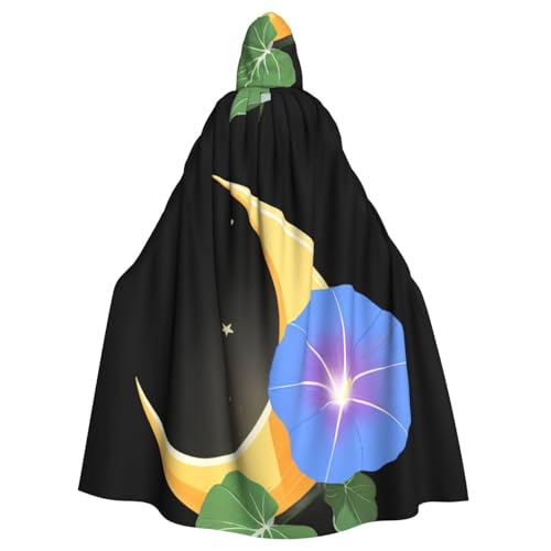 DLXW Morning glory on the moon Prints Halloween Adult Hooded Cape Cloak for wear during Halloween, role-playing