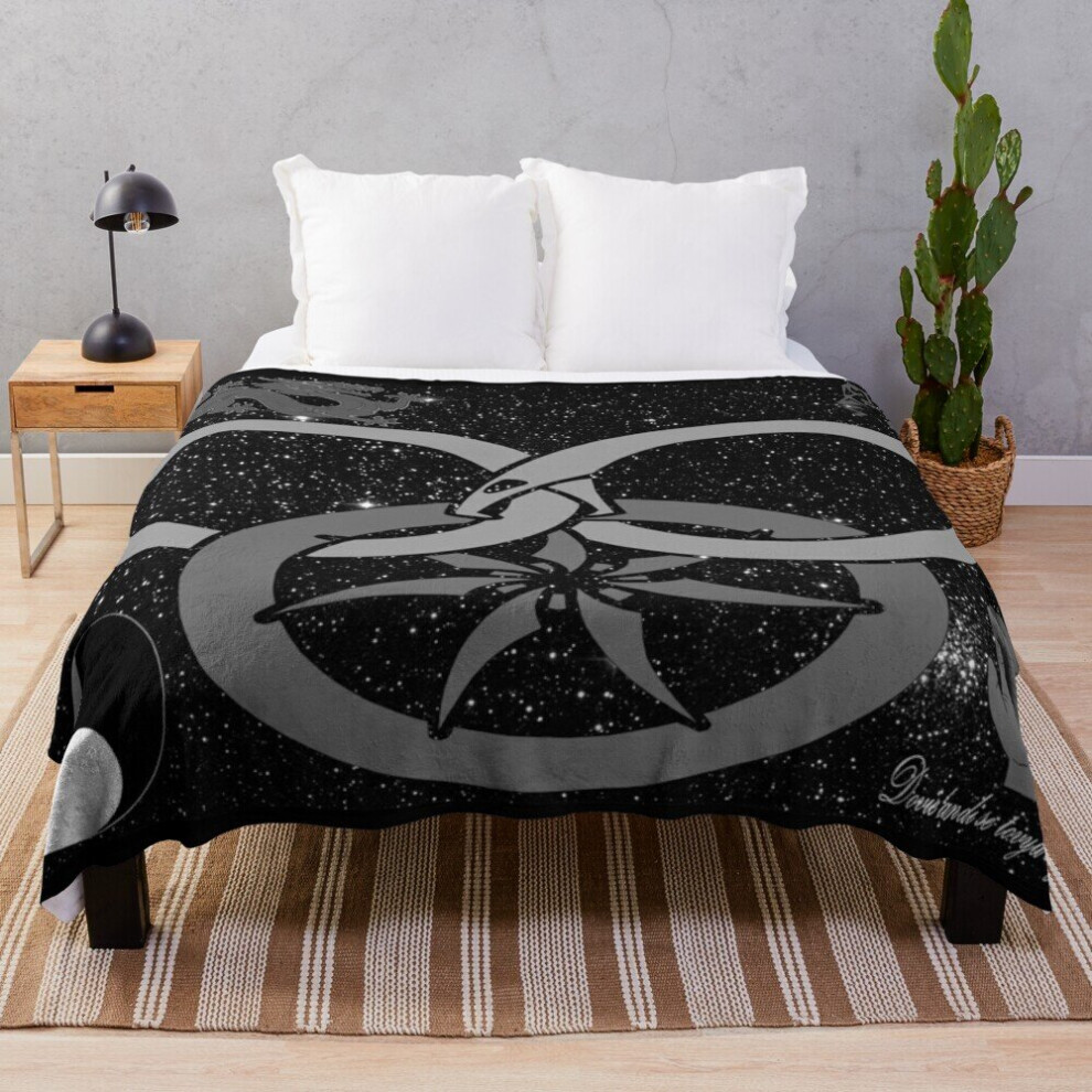 Fleece Throw Blanket Wheel of Time - Tel'aran'rhiod and symbols - black and white for Sofa Couch Kids 60 x 50 Inches