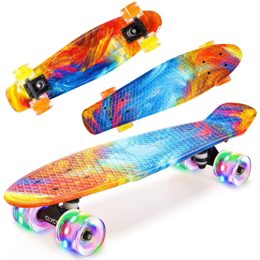 CLYCTIP Skateboard,22 inch Complete Mini Cruiser Board with Colorful Flashing Wheels and ABEC-11 Bearings for Kids,Boys,Girls,Beginners (colorful)