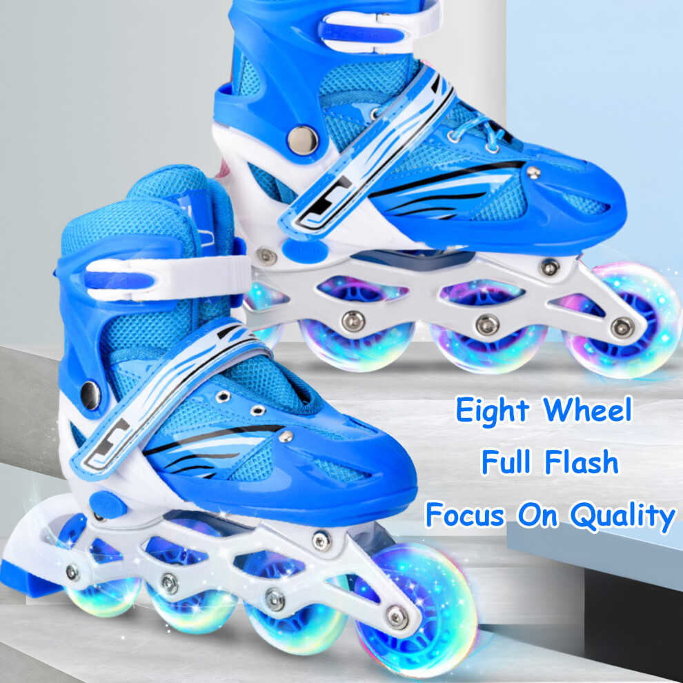 MasYosh Kids Adjustable Inline Skates, Fully Soft Roller Skates with Light Up Wheels and ABEC 7 Bearings, Triple Protection Design for Boys and Girls (S)