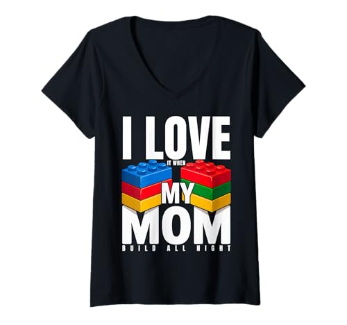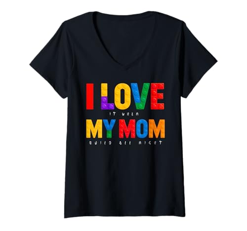 Women's I Love It When My Mom Build All Night Brick Block Mother Day V-Neck T-Shirt