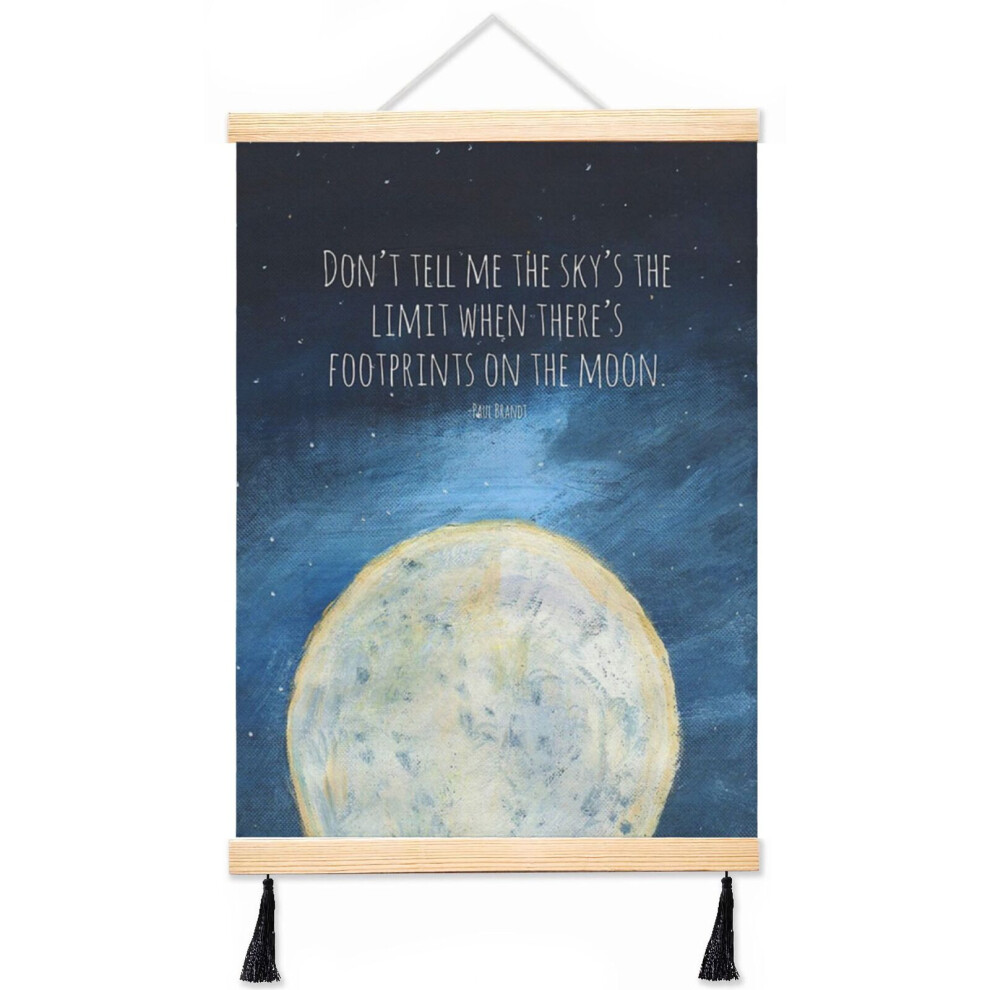 (Don't Tell Me The Sky's The Limit When There's Footprints On The Moon_1750) Canvas Poster Hanging Kit Frame 16x20 Inch Wall Hanger with Tassels Art H