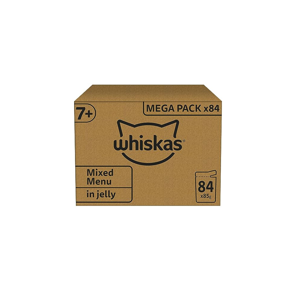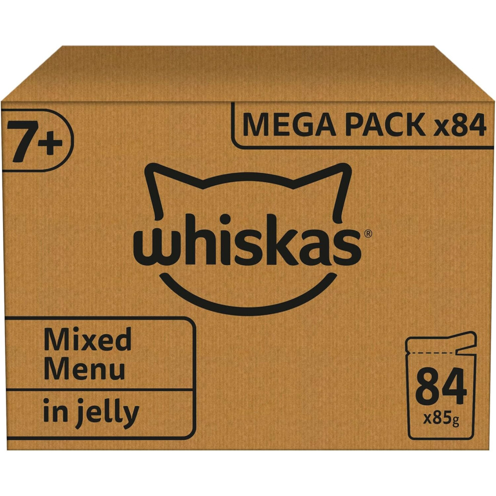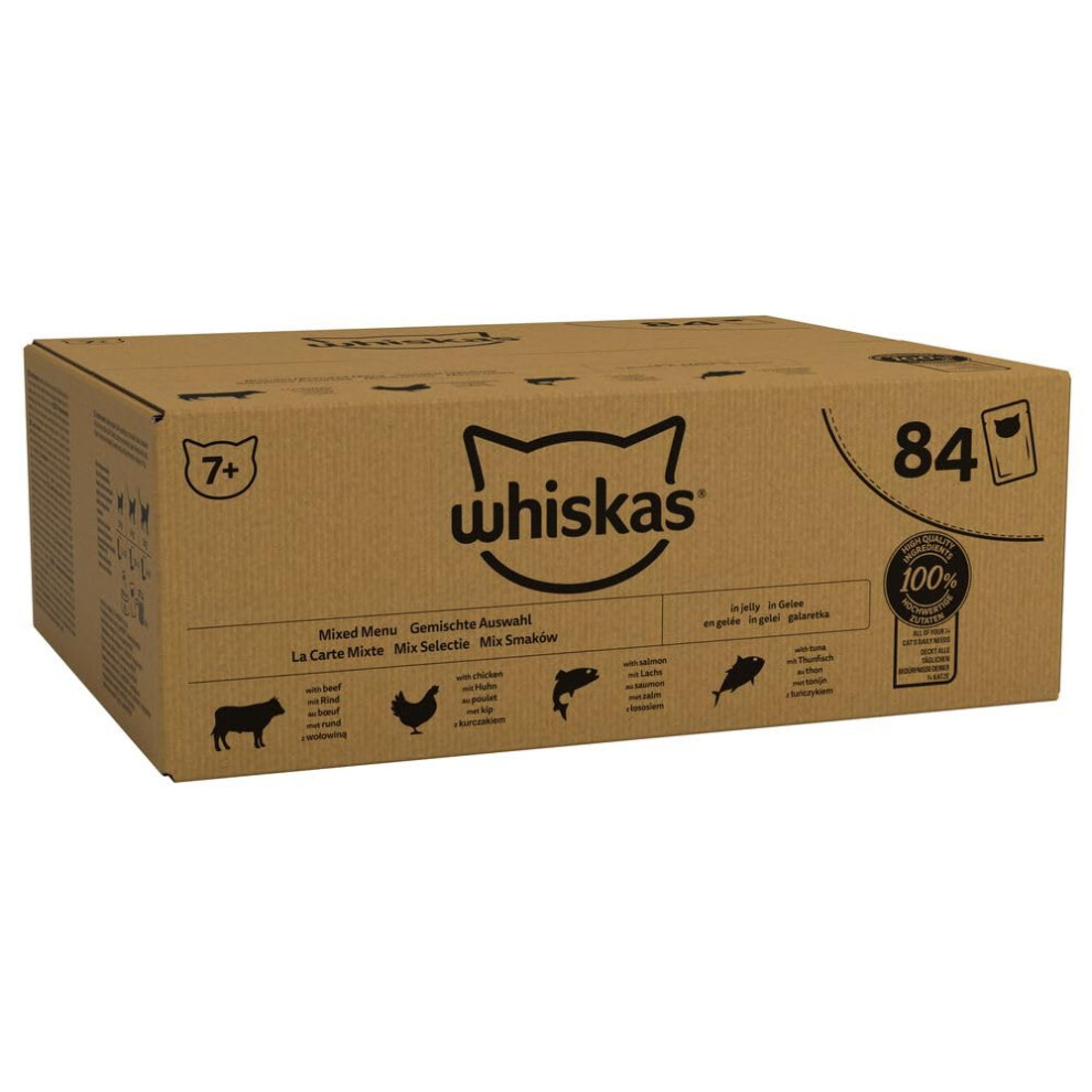 WHISKAS - 7+- Senior Wet Cat Food Pouches - 84 x 85 g - Mixed Selection in Jelly - Bulk Cat Food Megapack - 84 Pouches