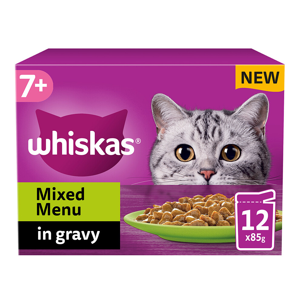 144 x 85g Whiskas 7+ Mixed Menu Senior Wet Cat Food Pouches in Gravy