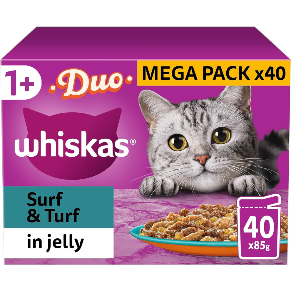 Whiskas Tasty Duo 1+ Surf and Turf in Jelly 40 x 85 g Pouches, Adult Cat Food