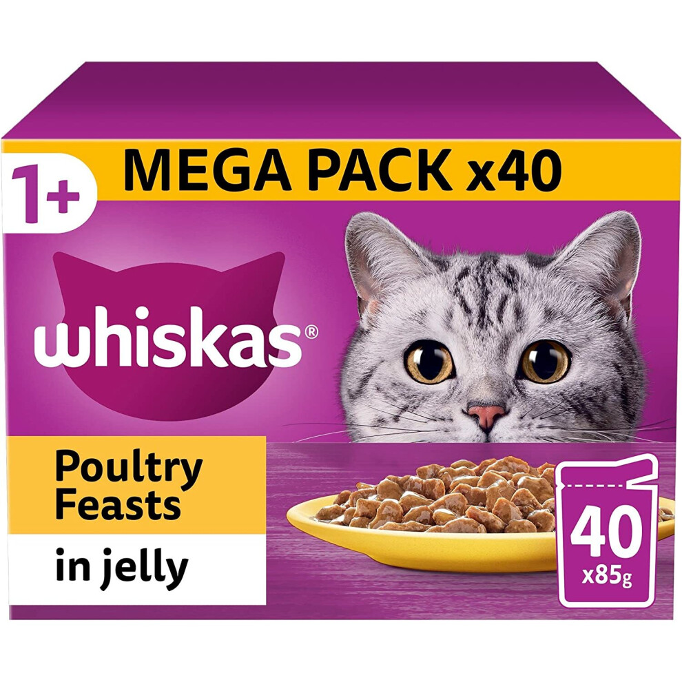 Whiskas 1+ Adult Poultry Selection in Jelly 40 Pouches Adult Wet Cat Food Megapack 40 x 85 g