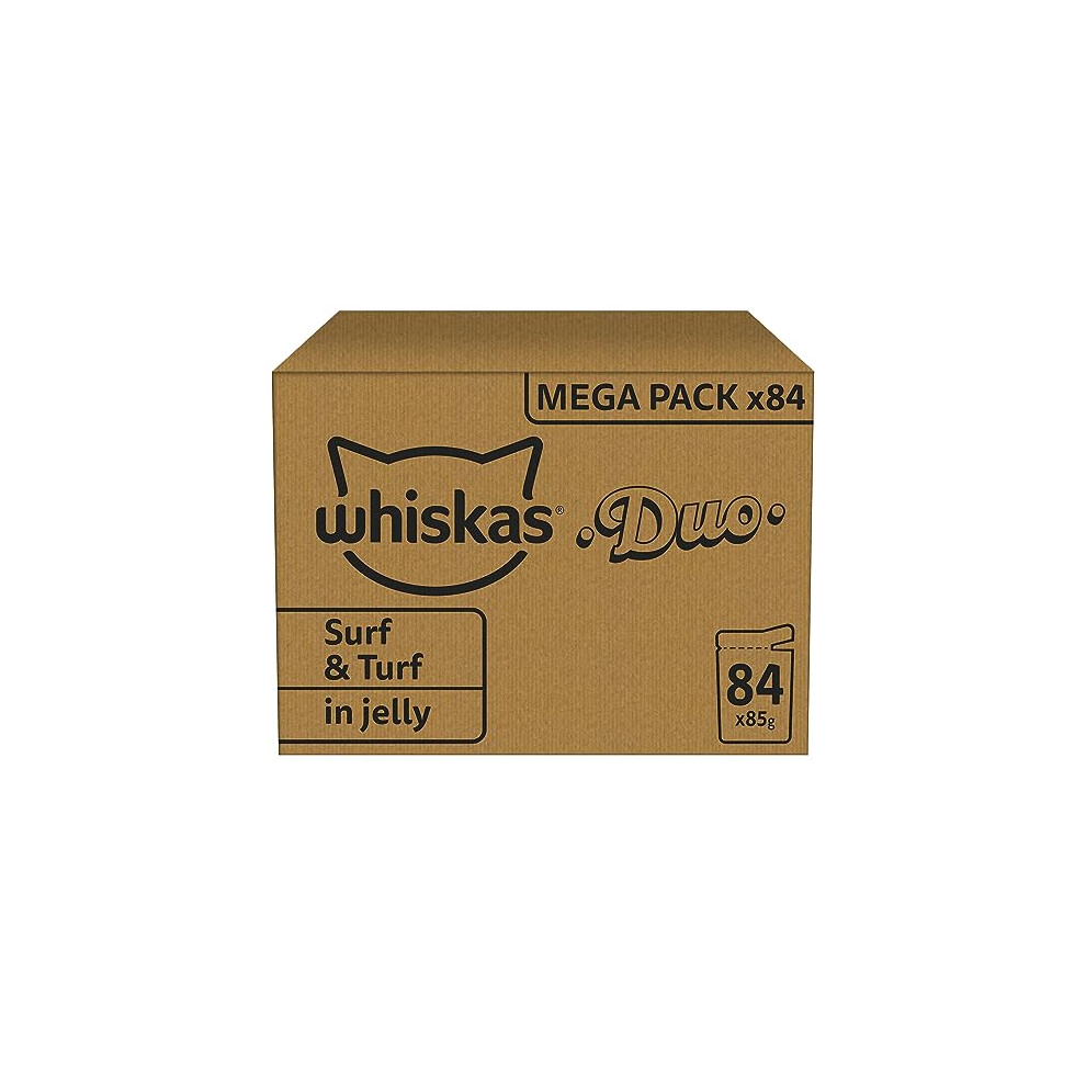 Whiskas 1+ Adult Tasty Duo in Jelly 84 Pouches, Adult Wet Cat Food, Surf & Turf, Megapack (84 x 85 g)