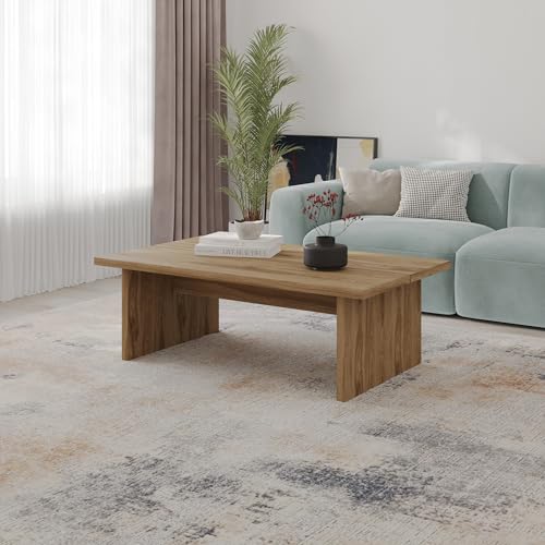 Scandinavian Rectangular Coffee Table 120×70×40 cm with Soft Corner Edges & Flat-Panel Legs | Spacious Centre Table Top for Living Room | Easy Assembly | 2-Year Guarantee (Whiskey Oak)