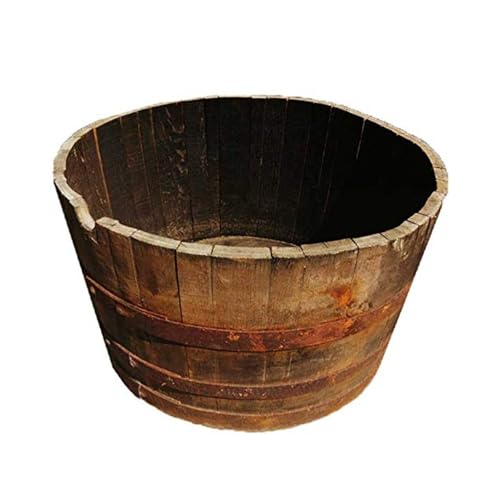 Celtic Timber Barrel Planter - Rustic Outdoor Plant Pot - Made from Aged Quarter-Sawn Oak - Weathered Wood for Outdoor Plants, Garden, Trees - Oak Whiskey Half Barrel Planter - 40 Gallon