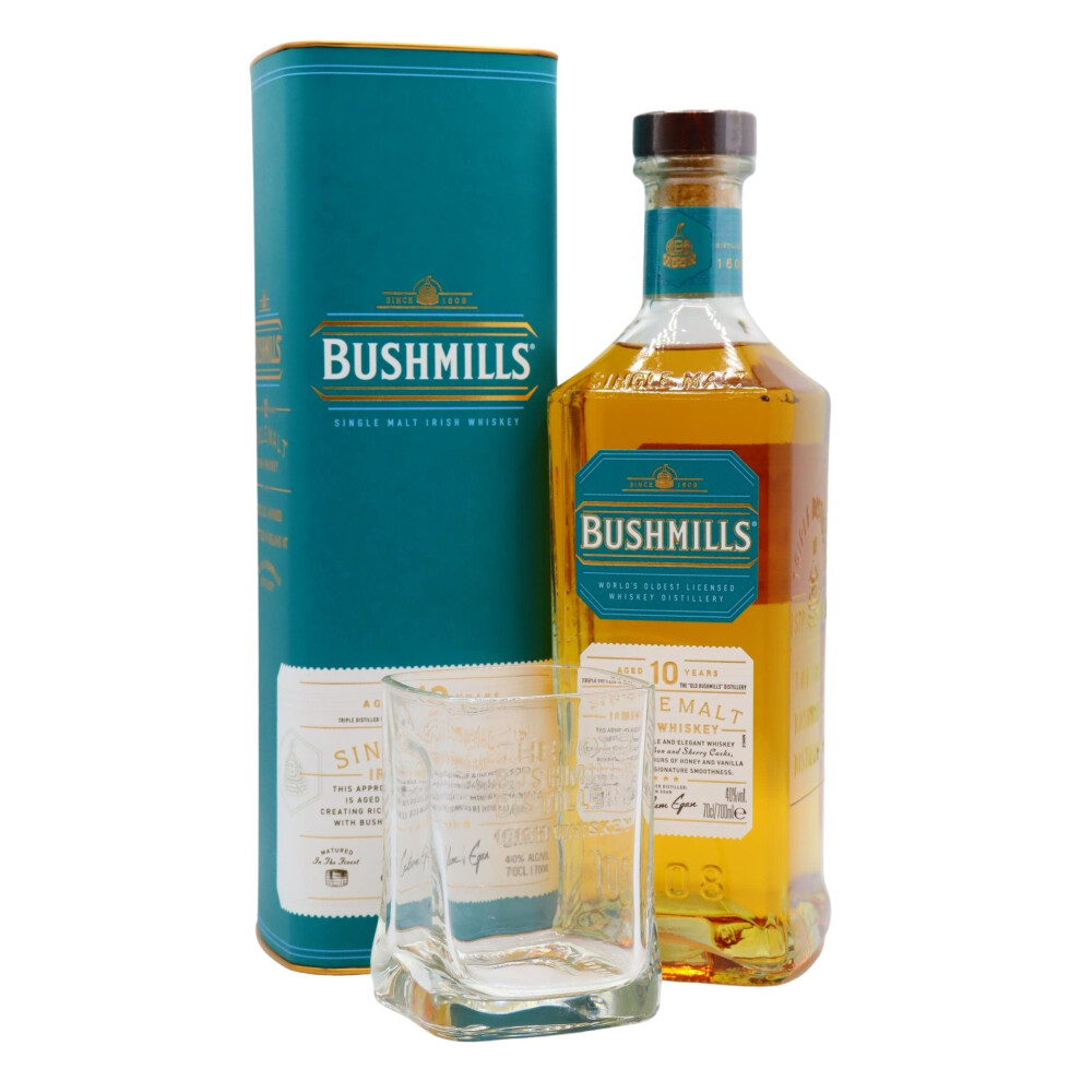 Bushmills - Glass & Irish Single Malt - 10 year old Whiskey 70cl 40% ABV