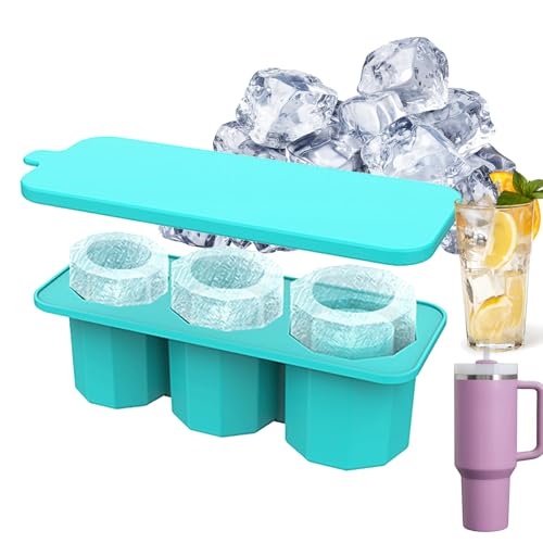 Joyeee Stanley Cup Ice Mold, Silicone Ice Cube Tray, Ice Cube Moulds for 30/40oz Tumbler, Stanley Travel Cup Accessories Hollow Cylinder with Sealing Lid for Freezer Coffee Juice Whiskey Cocktail