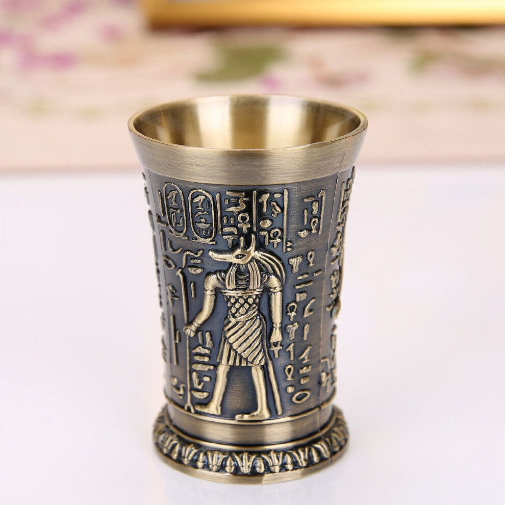 I Piece Bronze Metal Vintage Egyptian Shot Glass Creative Wine Cup Personalized Glass Drinking Bar Gift for Whiskey 40ml