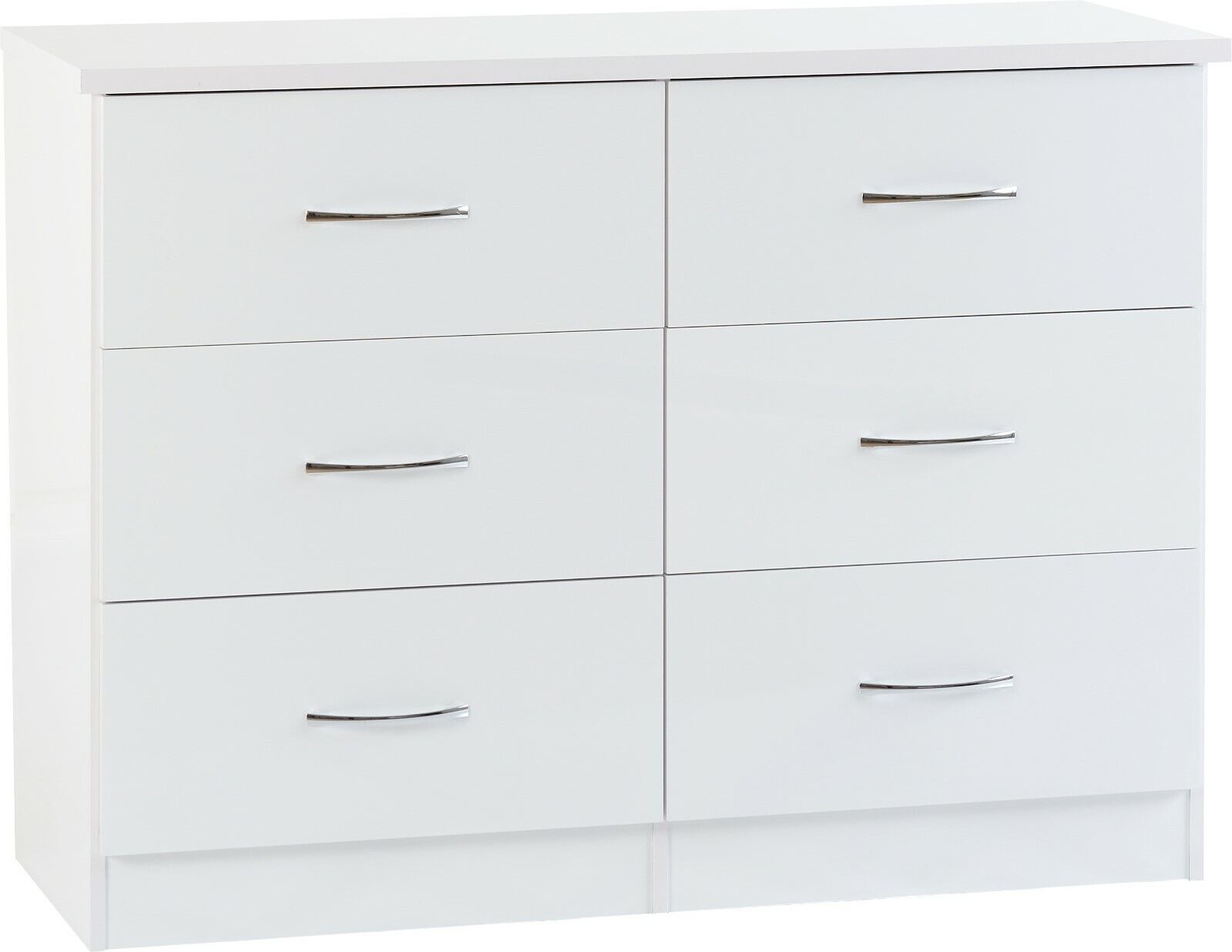 Elm home and garden Painted Oak Cream Off White 6 Drawer Chest Of Drawers Wide Large Fully Assembled