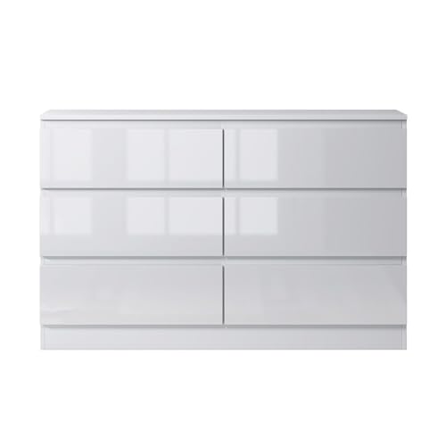 Elm home and garden Painted Oak Cream Off White 6 Drawer Chest Of Drawers Wide Large Fully Assembled