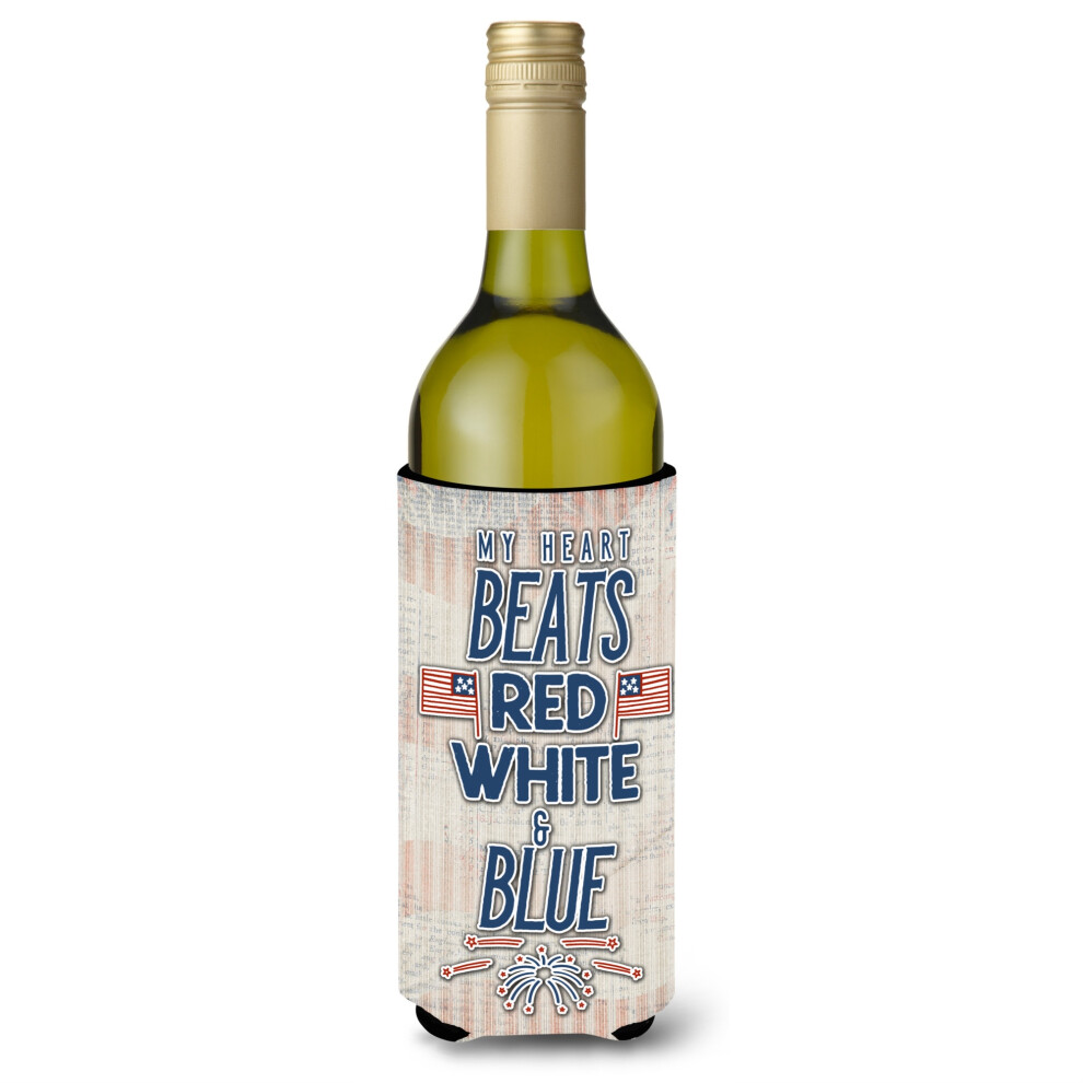 Caroline's Treasures BB5445LITERK My Heart Beats Red White and Blue Wine Bottle Beverage Insulator Hugger 750ml Multicolor