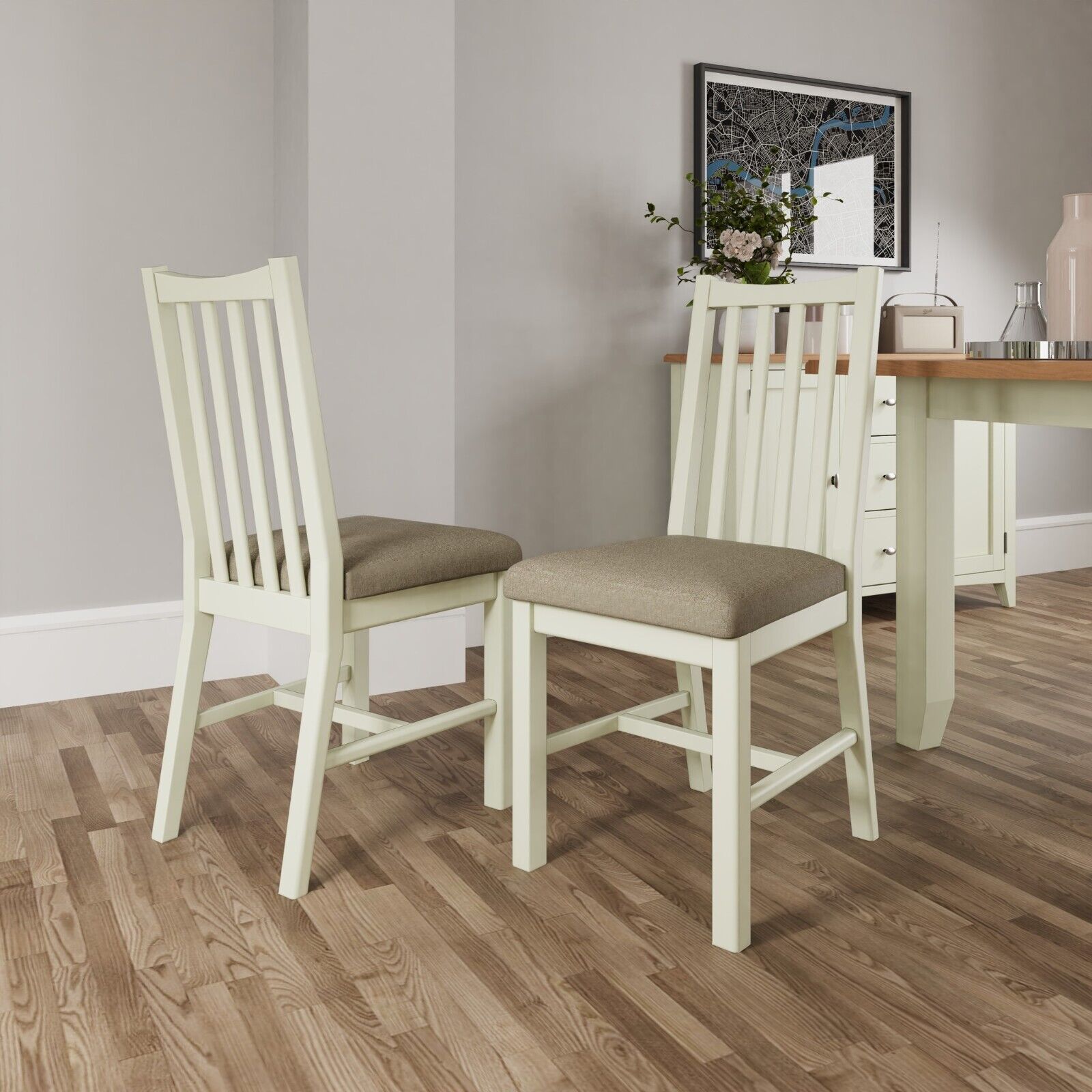 Kettle Interiors Essentials Painted White Dining Chair With Grey Fabric SET OF 4
