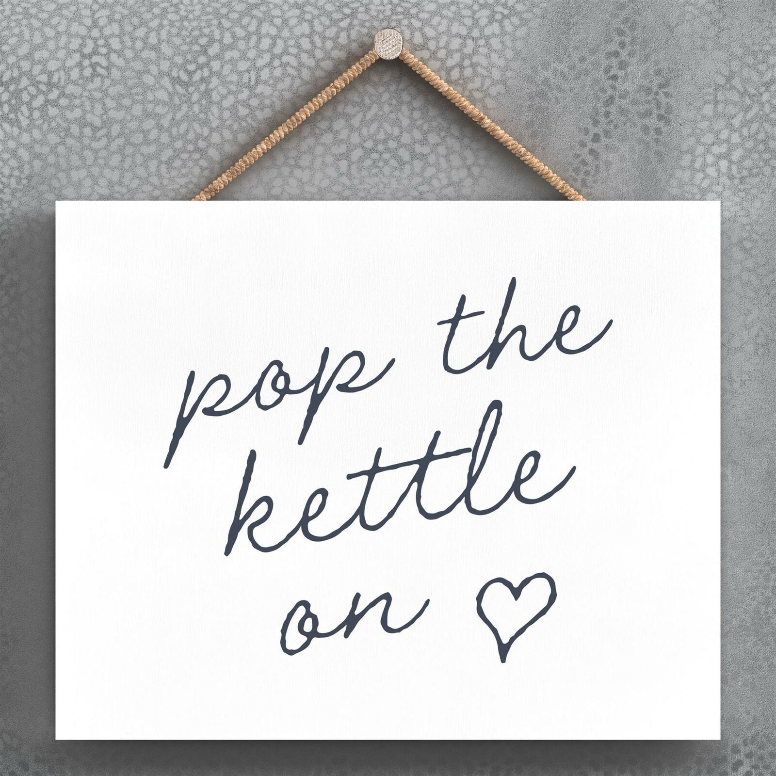 POP KETTLE ON MODERN GREY TYPOGRAPHY HOME HUMOUR WOODEN HANGING PLAQUE
