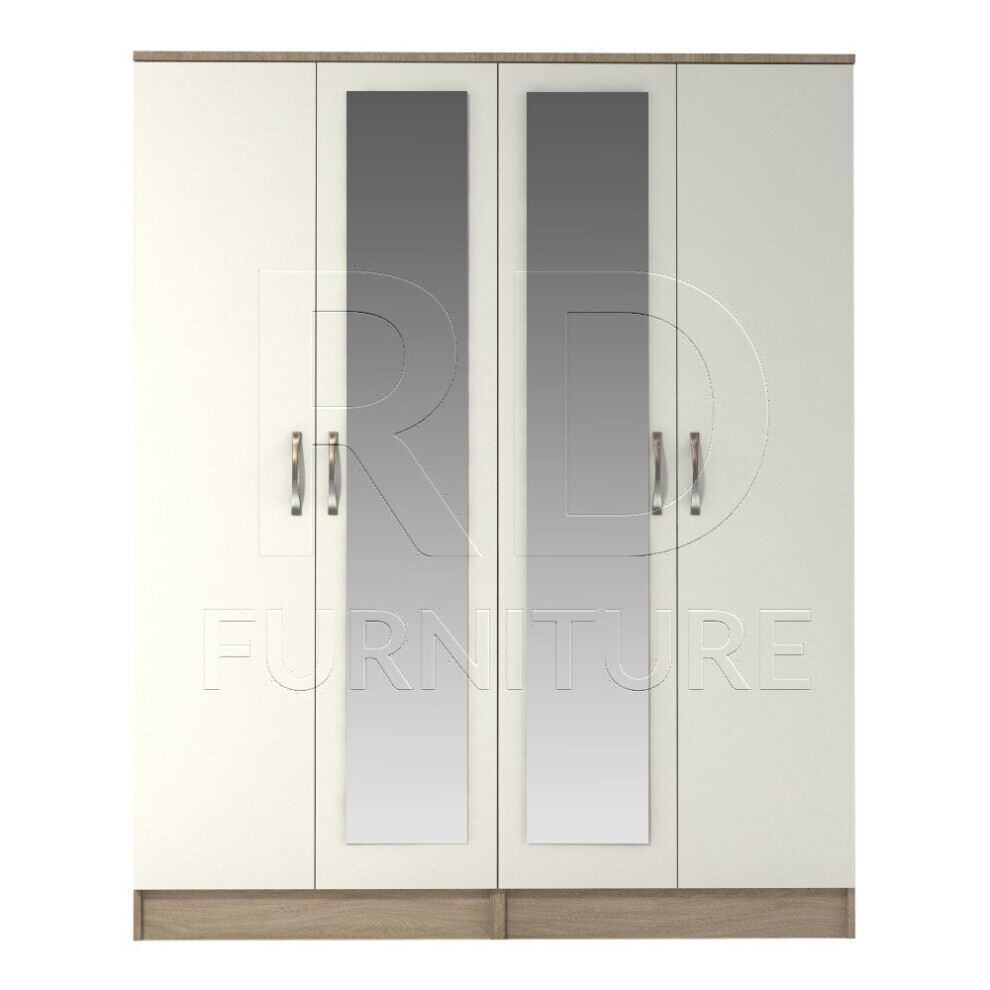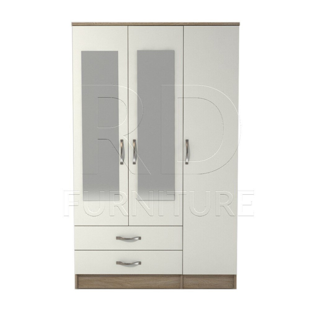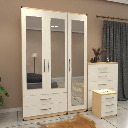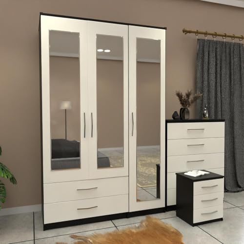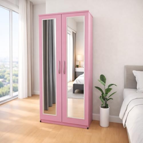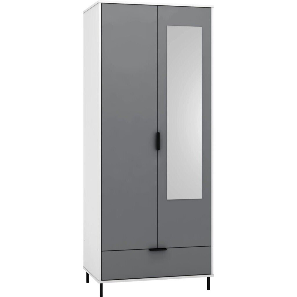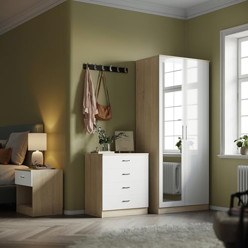 2 Door Mirrored Wardrobe, White and Oak, 78x50x184 cm, Pre-Assembled Storage Cabinet (Black & White)