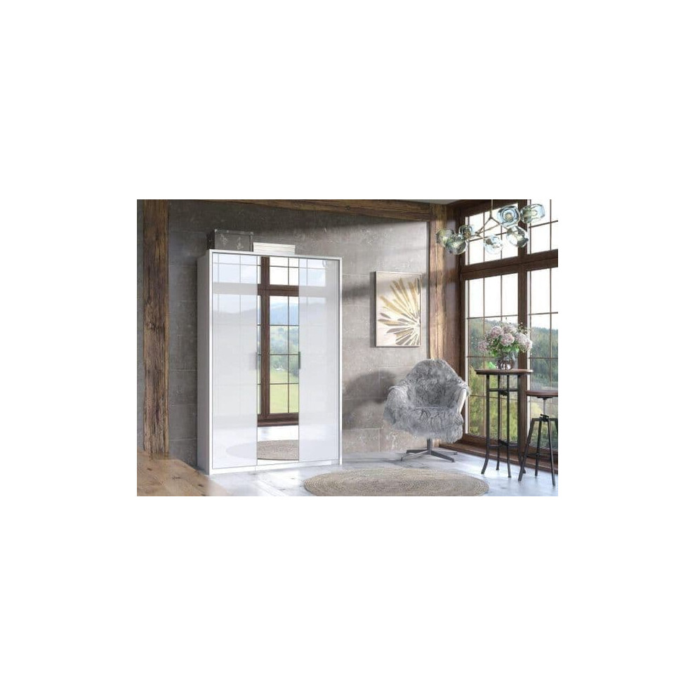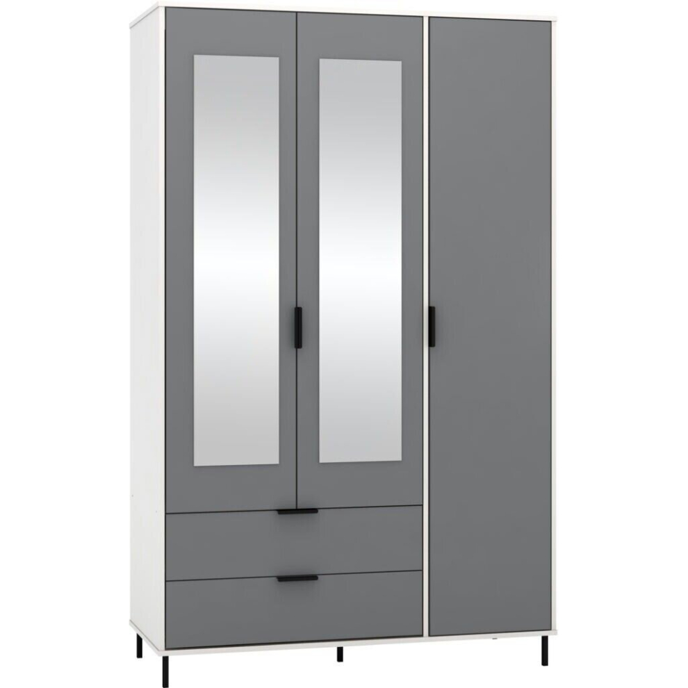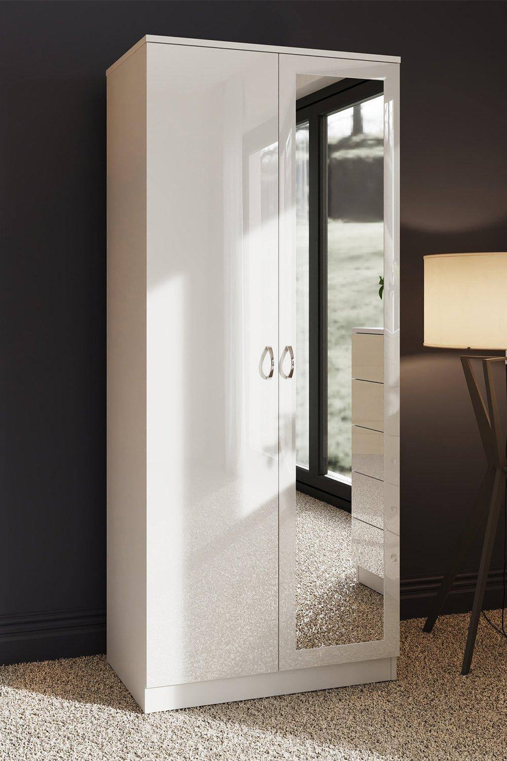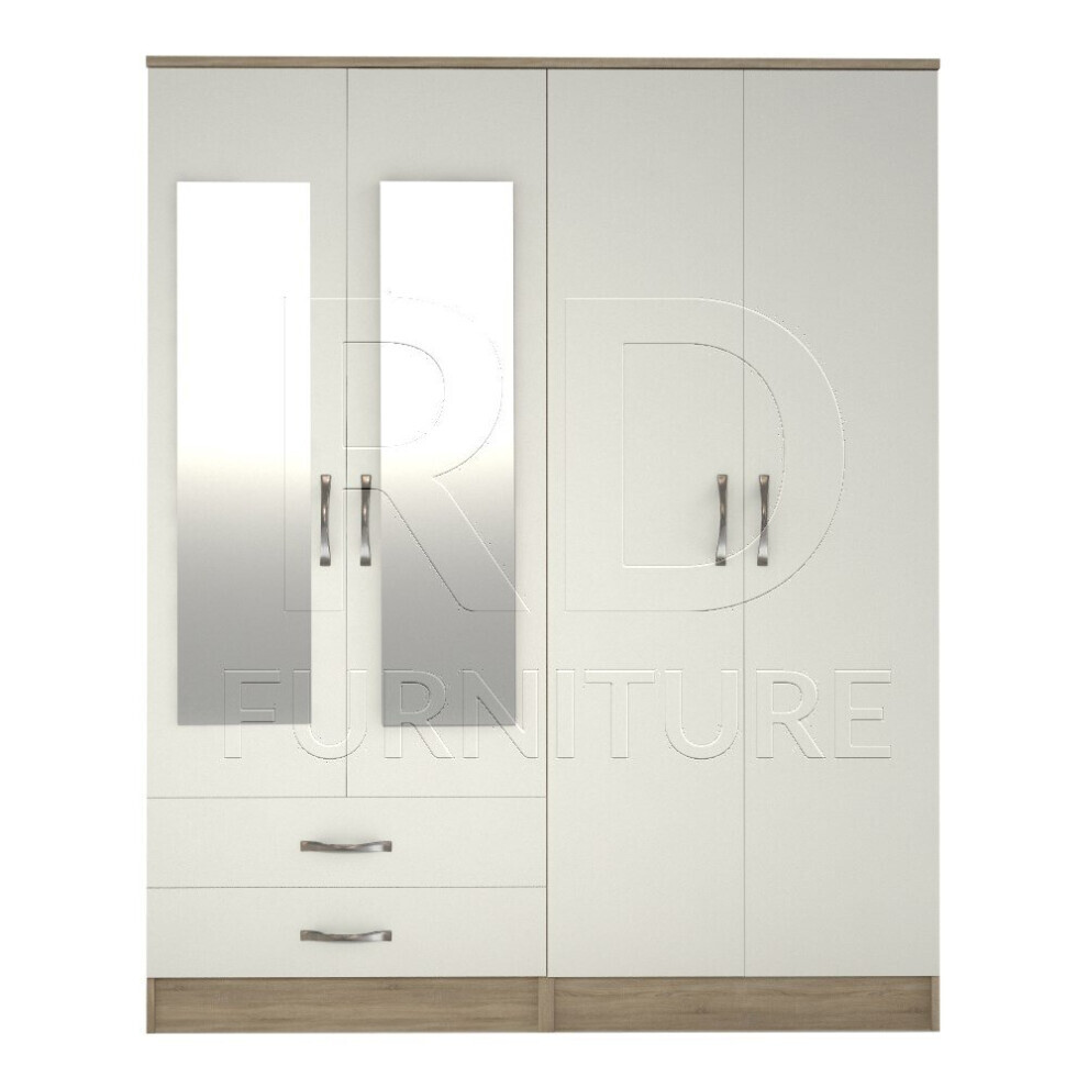 2 Door Mirrored Wardrobe, White and Oak, 78x50x184 cm, Pre-Assembled Storage Cabinet (Black & White)