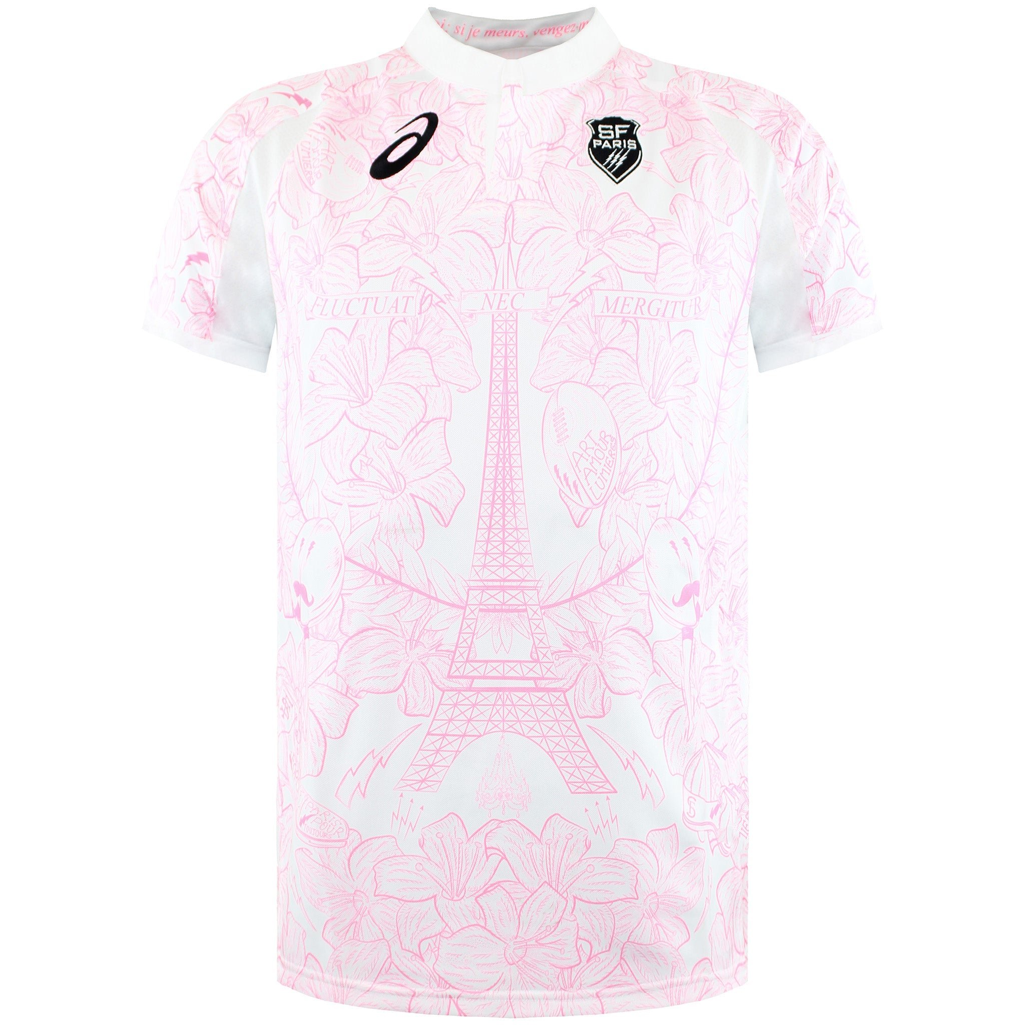 Asics SF Stade Francais Mens White/Pink Rugby Shirt - Size 2XL