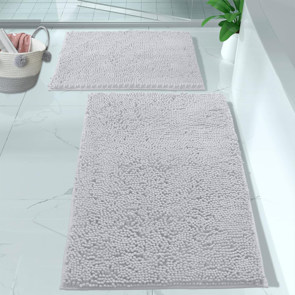 BedLooms White Bath Mat Non-Slip Anti Mould, 2 Pack 60x90cm Chenille Bathroom Mat, Ultra Soft Machine Washable Bath Mats Water Absorbent Shower Mat