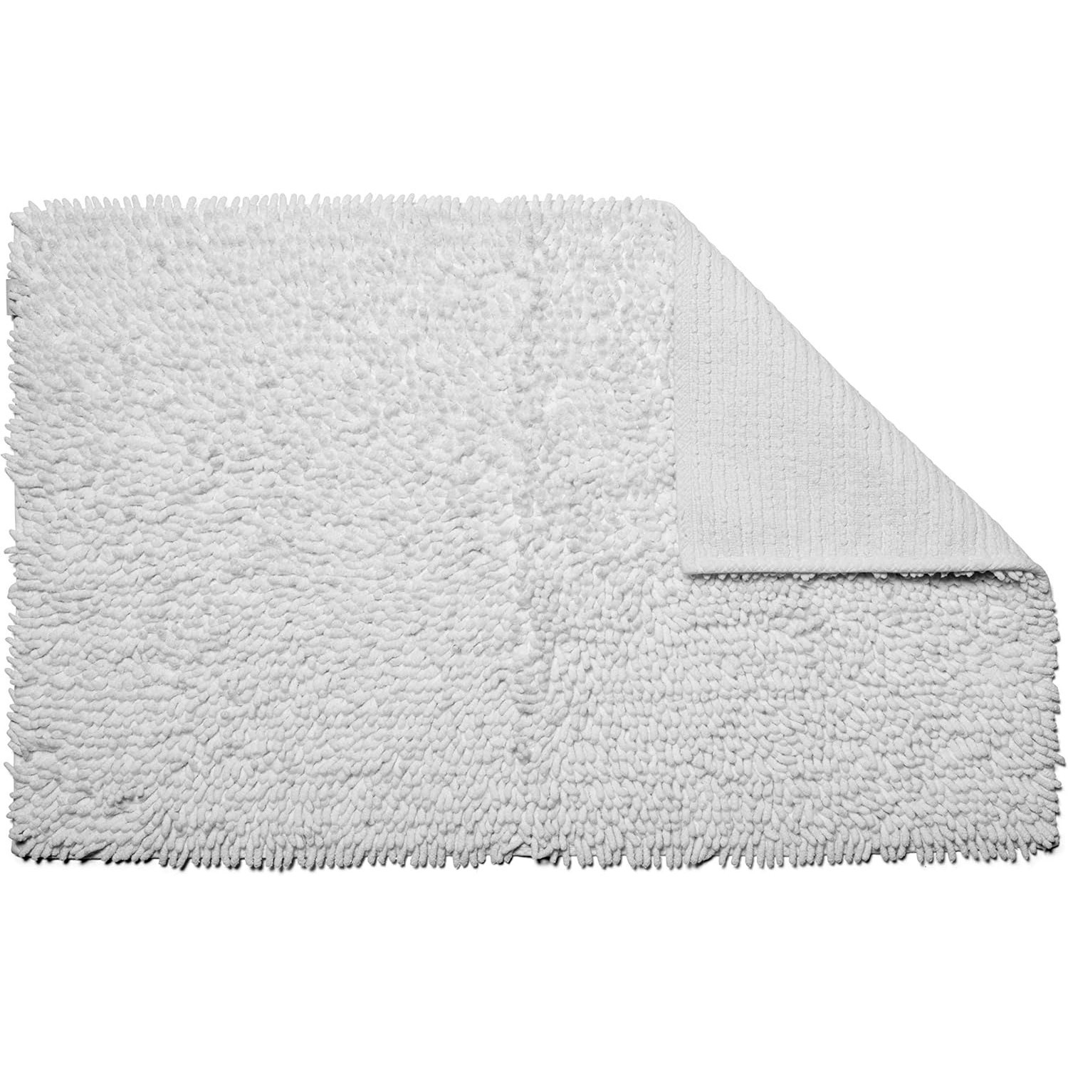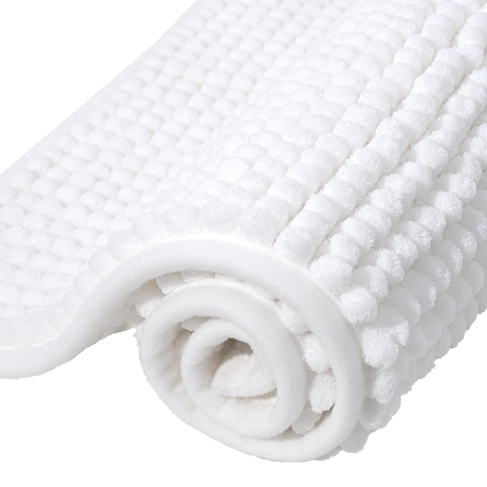 COLOR&GEOMETRY Chenille Rubber Backed White Bath Mat- Non Slip, Absorbent, Quic