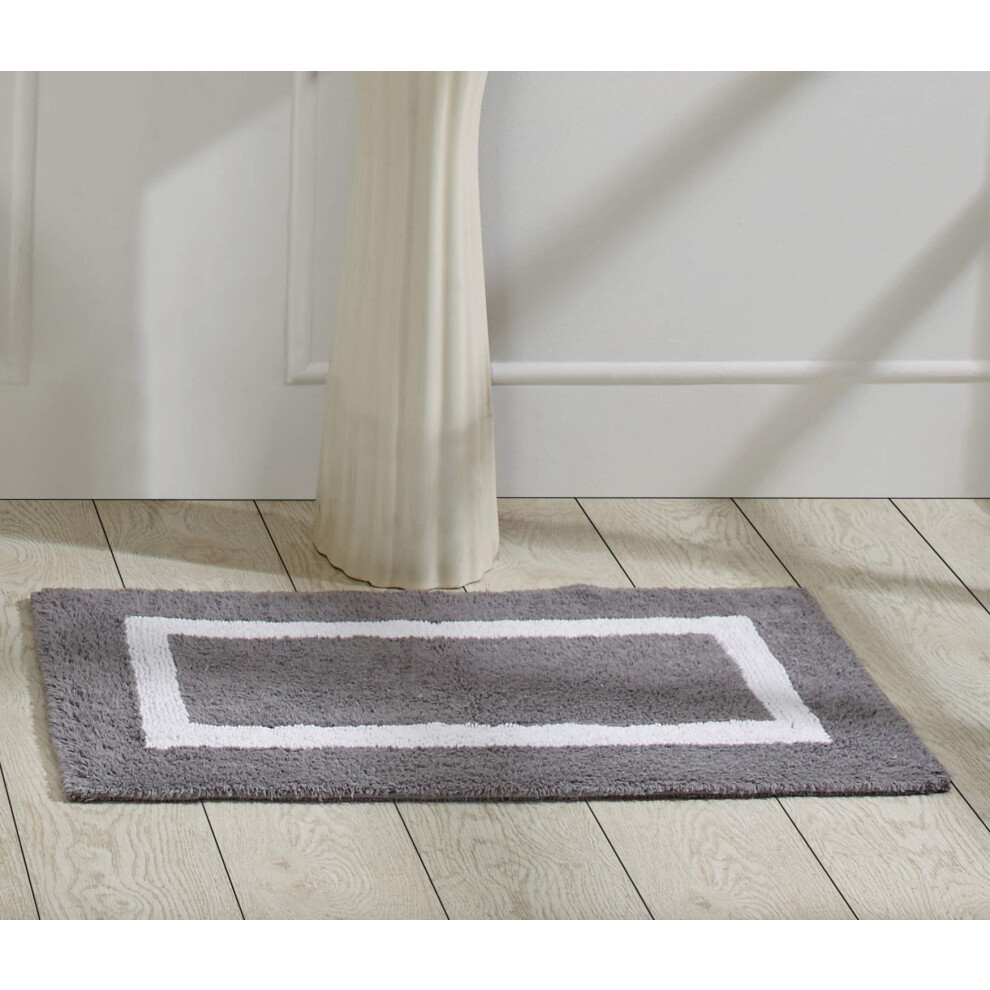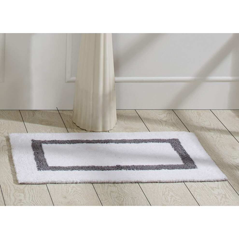 Better Trends 100% Cotton Hotel Collection Bath Mats White & Gray Bath Mat - Tufted Reversible & Absorbent & Machine Washable Bath Mats for Bathtub