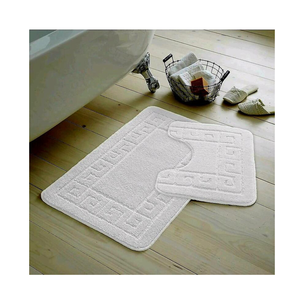 (Snow White) Jacquard Greek Bath Mat Set 2 Pieces Anti Slip Water Absorbent Machine Washable