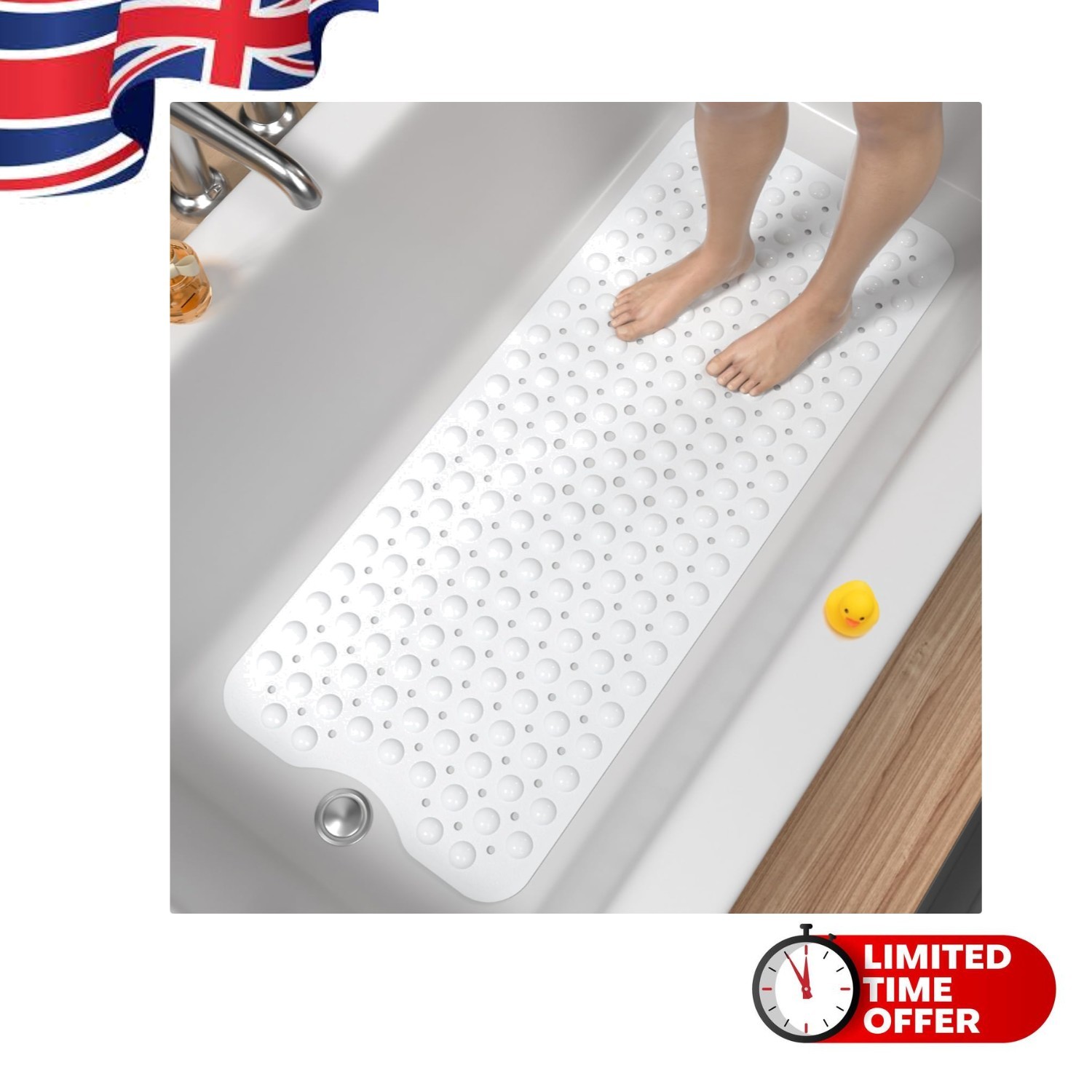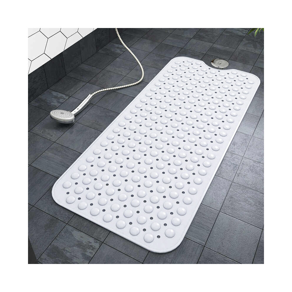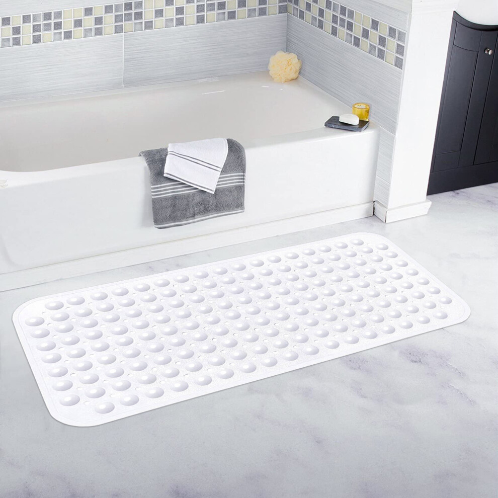 (40x100 CM, White) Extra Large Bath Mat Non Slip Bathtub Strong Suction Anti-Mold Rubber Shower Mats