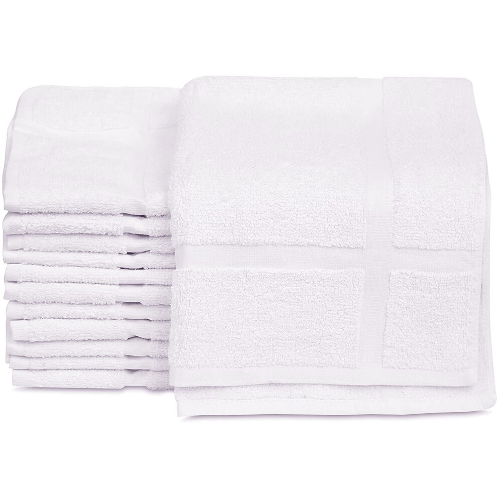 gOLD TEXTILES 12 Pack White Bath Mat Towels 20x30 Inches (Not a Bathroom Rug)- cotton Blend Washable Economy Hotel Bath Mats