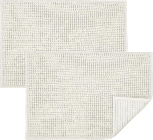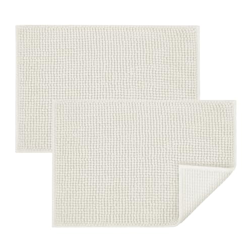 BedLooms White Bath Mat Non-Slip Anti Mould, 2 Pack 40x60cm Chenille Bathroom Mat, Ultra Soft Machine Washable Bath Mats Water Absorbent Shower Mat