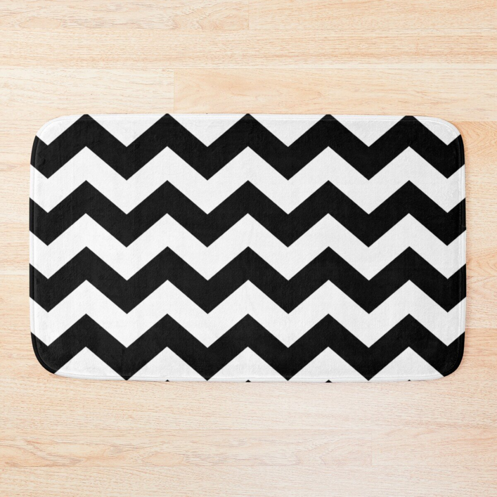 Black and White ZIG-ZAG Bath Mat 20x31in - Non-Slip, Machine-Washable Polyester Rug with TPR Backing - Ob-FG-RedBSBhMt1-1292543309.6515