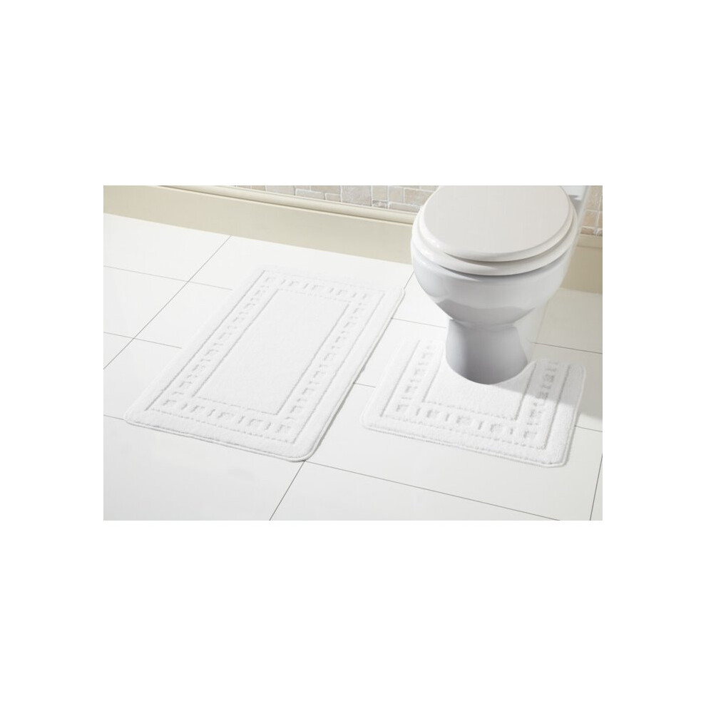 (white) Miami Bath Mat Set 2 Piece Non Slip Rubber Pedestal Mat Toilet Bathroom Mat