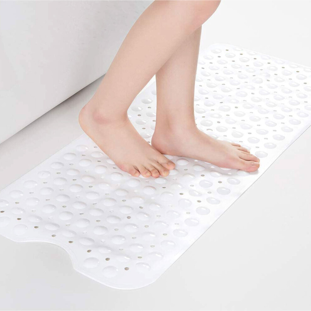 (Large (40 x 100) cm, White Bath Shower Mat) Non Slip Bath Shower Mats Anti-Bacterial Bathtub Mat
