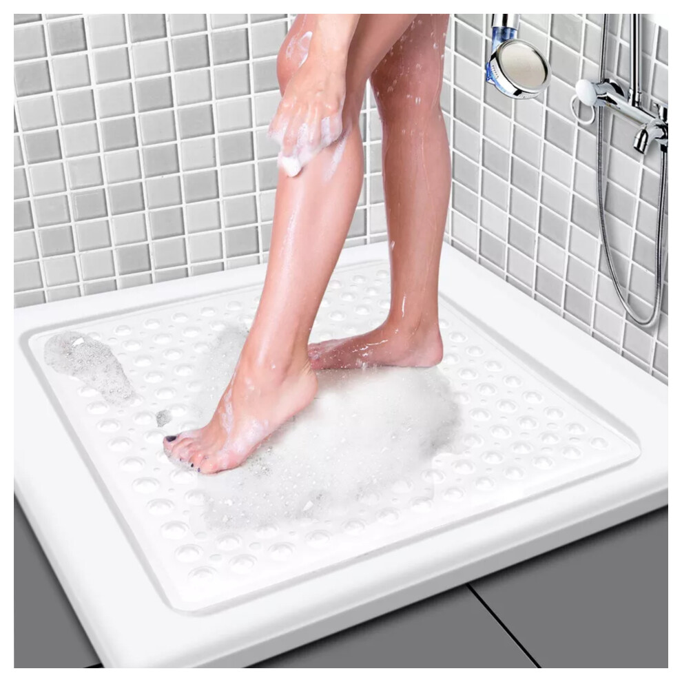(53 x 53 cm , White) Large Bath Mat Non Slip Shower Mats Bathroom Safety