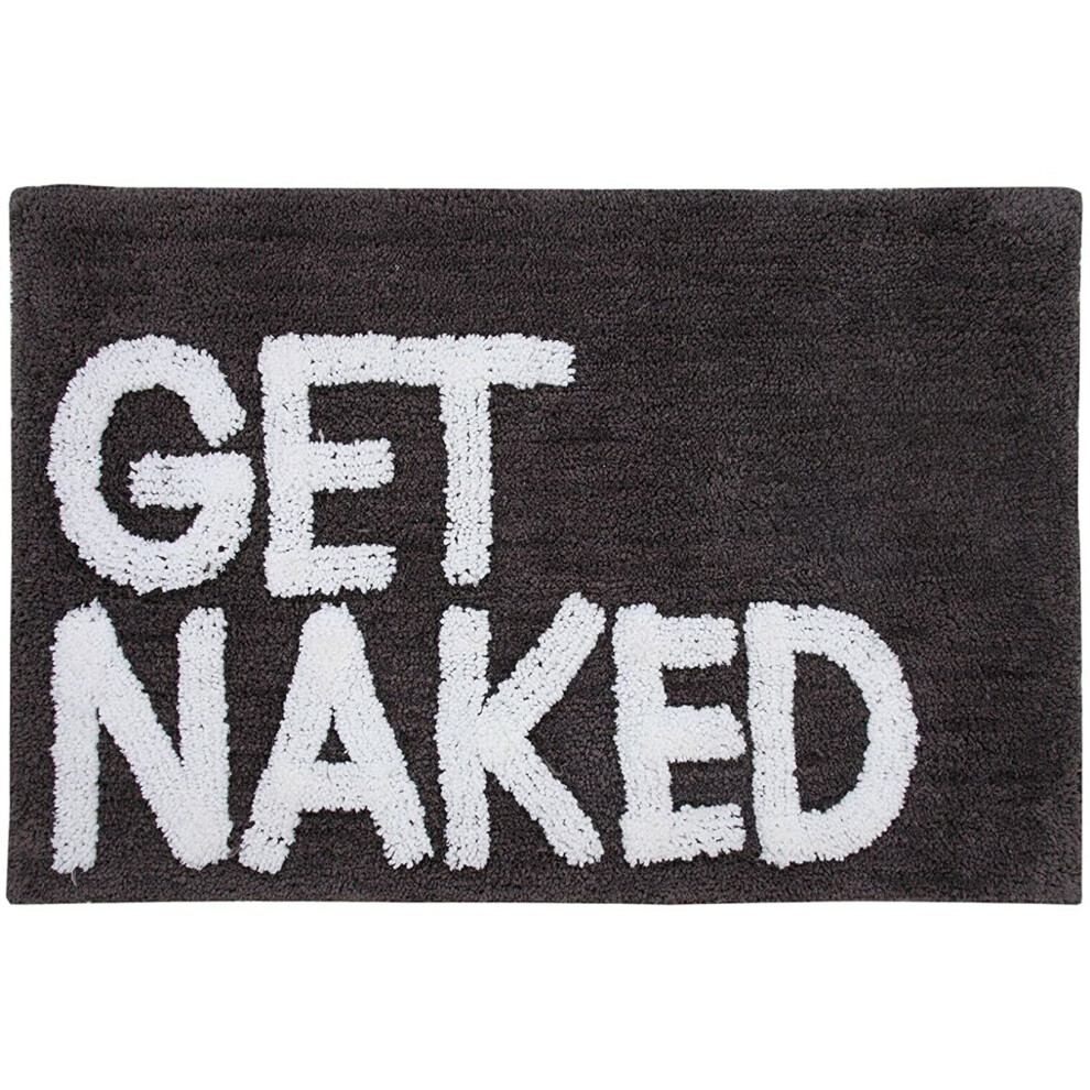 (Grey/White) Get Naked Bath Mat Non-Slip 50 x 80cm - Tufted Slogan Bathroom Rug