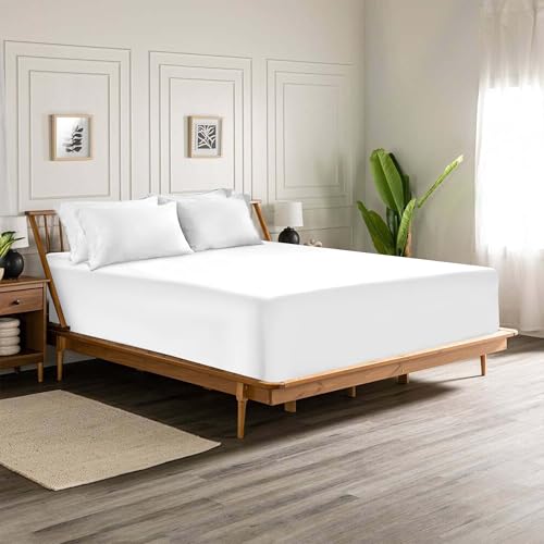 Aspire Homeware Super King Fitted Sheet - 25 cm Deep Hotel Quality (White) Bed Sheets - Soft & Breathable Superking Fitted Sheet - Anti-Wrinkle Easy Care Fitted Sheets