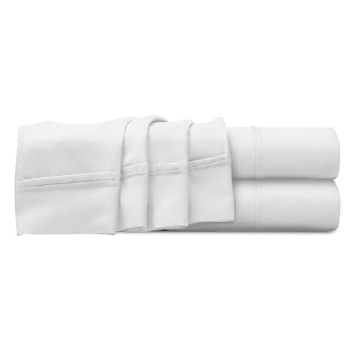 Highams Single Fitted Sheets, Soft Fabric Bed Sheet, Deep Pocket Fitted, 400 Thread Count, 100% Cotton, Fade Resistant Bottom Bed Sheet - White, 90 x 190 x 30cm
