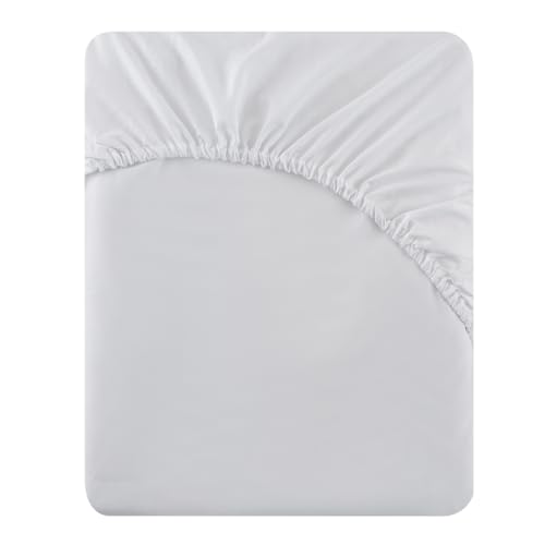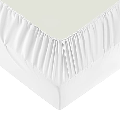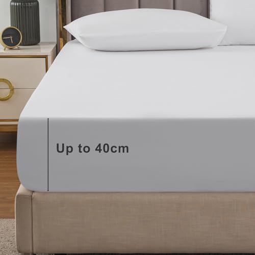 Hafaa Single Fitted Sheet White Bedding Bed Sheets 40 Cm Extra Deep Pocket Fitted Sheets Easy Care Soft Brushed Microfiber Fabric Shrinkage Fade-Resistant