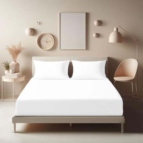 Moonlight Bedding King Size Fitted Sheets - 25cm Deep King White Fitted Bed Sheets - Soft Brushed Fabric Shrinkage, Wrinkle free And Fade Resistant Easy Care Bed Sheet (152 x 200 Cm)