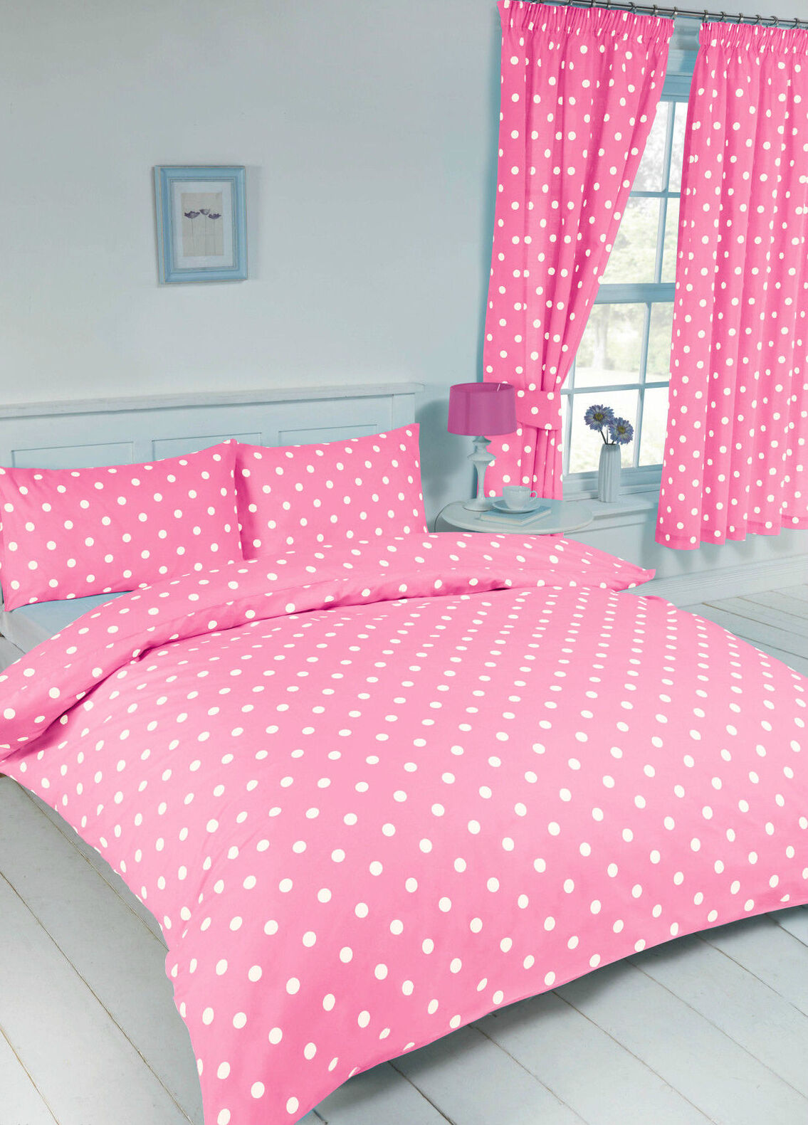 SINGLE BED DUVET COVER SET POLKA DOT BABY PINK WHITE REVERSIBLE GIRLS BEDDING