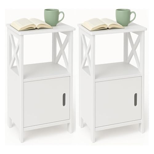 HOLIDYOYO End Tables for Bedroom White Bedside Cabinet Nightstand Table Side Storage